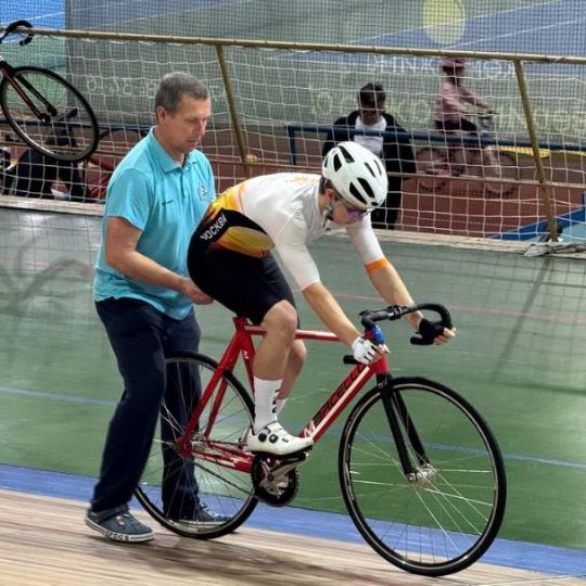 Велосипедный спорт на треке.У спортсменов нашей секции тренировки на треке проходят по адресу: ул. Крылатская, дом 10, Велотрек «Крылатское» Езда по треку осуществляется на специальных Трековых велосипедах.